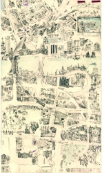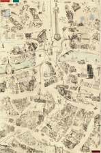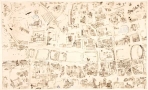 ‘In medias Res’ is comprised of seven drypoint prints which together form a map of a large part of Dublin and its environs which include the areas of the city that feature prominently in Ulysses. Constructed from a multiplicity of drawn marks and viewpoints, packed with references to the topography of Dublin and to plot fragments, characters, anecdotes, conversations, historical events and classical allusions all mentioned or implicit in the text. The work enables the viewer to orientate himself or herself within Dublin as it appears in Ulysses and as it is today and to follow the routes taken by various characters in Ulysses as they crisscross the city throughout 16th June 1904.
