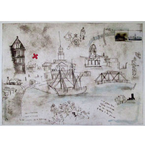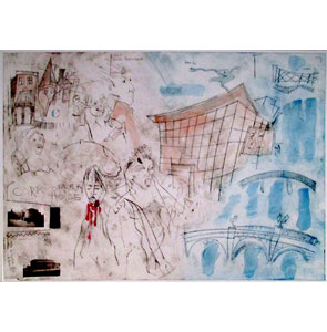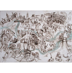 ‘Shandon’, Drypoint, watercolour, chiné colle, 50 x 70 cms