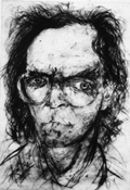 ‘Self-portrait’, drypoint, 63x43cms, 1989,